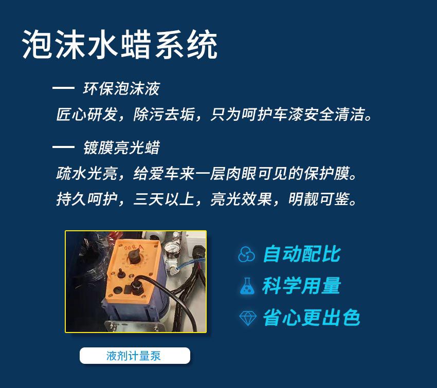 本款設備既能快速洗車,又能連續式洗車,每小時可實現50-60輛車的清洗能力,她的引進,大大的滿足了有較大營業場地,洗車量大的客戶的需求,現在有許多日洗車量在500輛以上的客戶,都在使用這款設備。